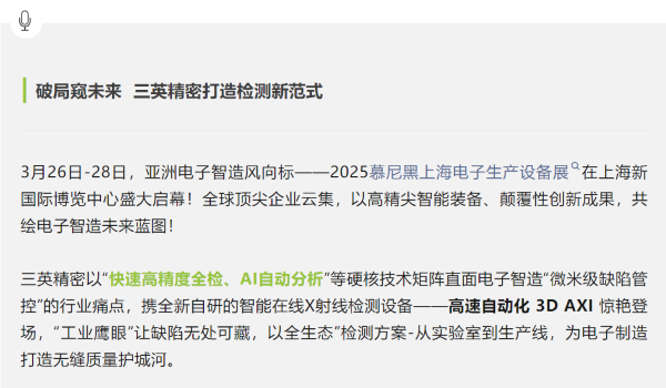 3D AXI引爆全场!势领电子智造检测新未来 | 新葡萄8883精密2025慕尼黑上海电子展高燃收官!